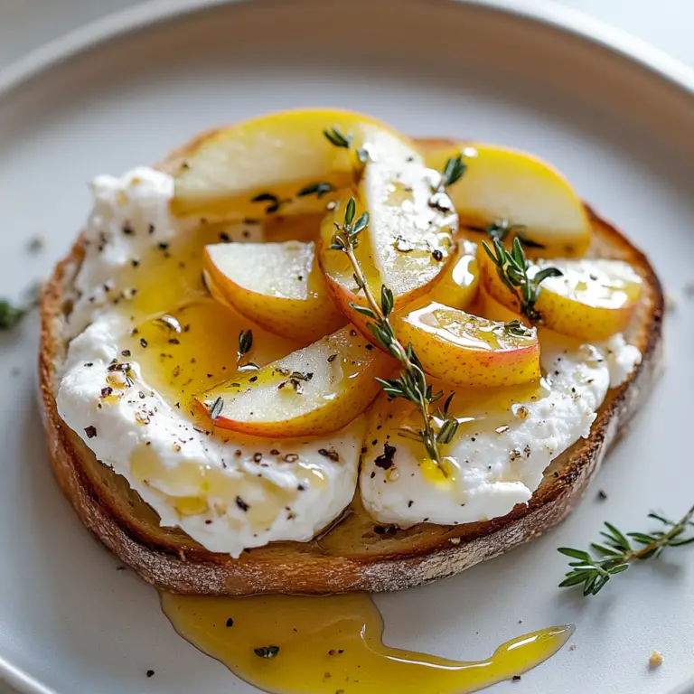 Apple and Honey Burrata Toast is a delightful fusion of creamy burrata cheese, crisp apple slices, and rich honey, all atop perfectly toasted bread. This easy-to-make dish serves as a stunning appetizer or a brunch centerpiece that captivates with its vibrant colors and harmonious flavors. The combination of sweet and savory elements creates an irresistible taste experience that will impress your guests or satisfy your cravings during cozy evenings at home. With minimal prep time and simple assembly, this recipe allows you to whip up gourmet toast in no time. Customize it with your favorite toppings for a personal touch or enjoy it as-is for pure indulgence.