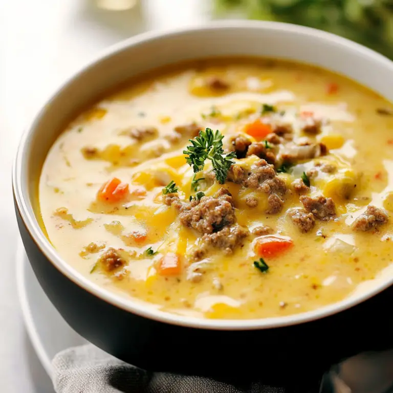 Cheeseburger Soup brings the beloved flavors of a classic cheeseburger into a creamy, hearty dish that’s perfect for any occasion. This comforting recipe combines lean ground beef, tender Yukon Gold potatoes, and fresh vegetables with a rich blend of sharp cheddar cheese. It’s simple to make, requiring minimal prep time and straightforward steps—ideal even for novice cooks looking to impress. Each spoonful offers warmth and satisfaction, making it an excellent choice for chilly evenings or casual gatherings with friends and family. Serve it with crusty bread or a fresh side salad for a complete meal that everyone will love.