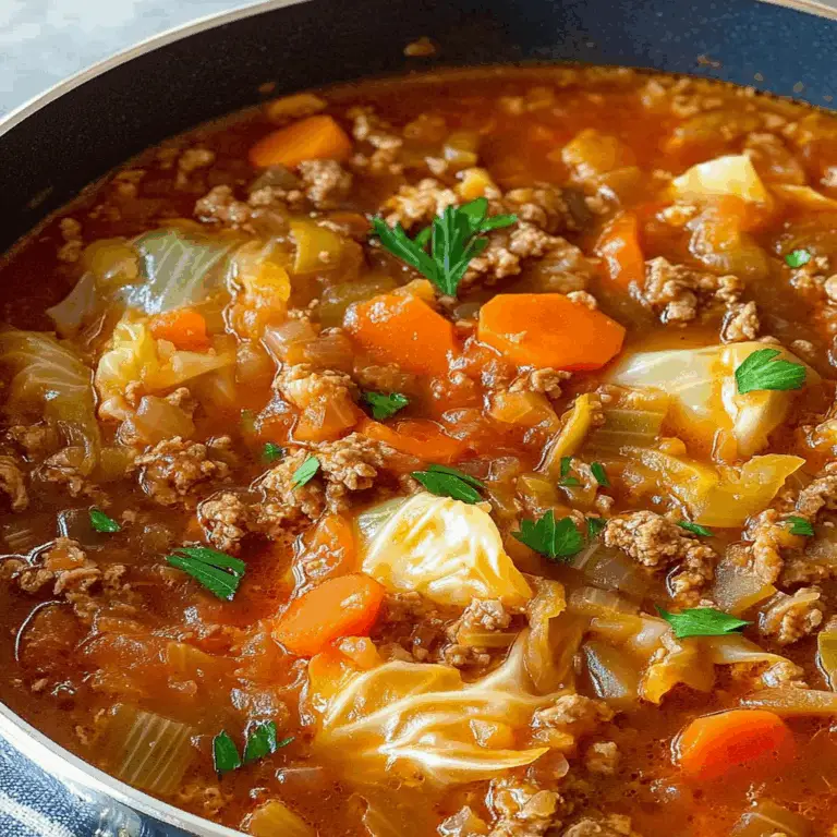 This dish is not just food; it’s an experience that transports you to your grandmother’s kitchen or your favorite childhood haunts. The best part? Cabbage Roll Soup can turn any dreary day into a delightful occasion, filling your home with warmth and your belly with joy. Whether it’s a chilly winter evening or an impromptu gathering of friends, this soup promises to be the star of the show. Get ready for flavors that will make your taste buds dance!