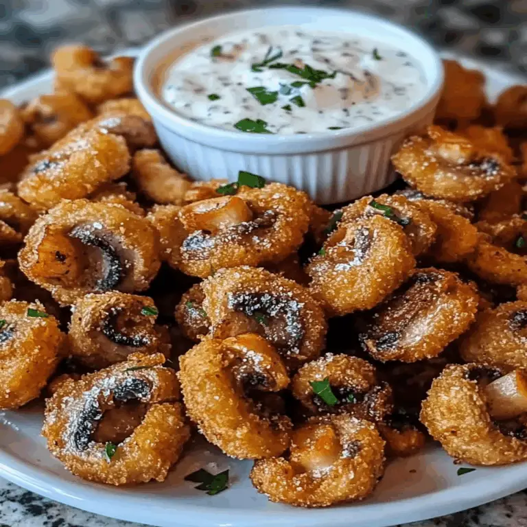 Fried mushrooms with ranch dip are the ultimate crowd-pleasing snack, transforming any gathering into a flavor-packed experience. These crispy, golden-brown mushrooms deliver an earthy richness that pairs perfectly with a creamy, zesty ranch dip. Easy to prepare and deliciously addictive, they make for an ideal appetizer at game nights or cozy movie marathons. Get ready to indulge in a delightful treat that will have everyone coming back for more!
