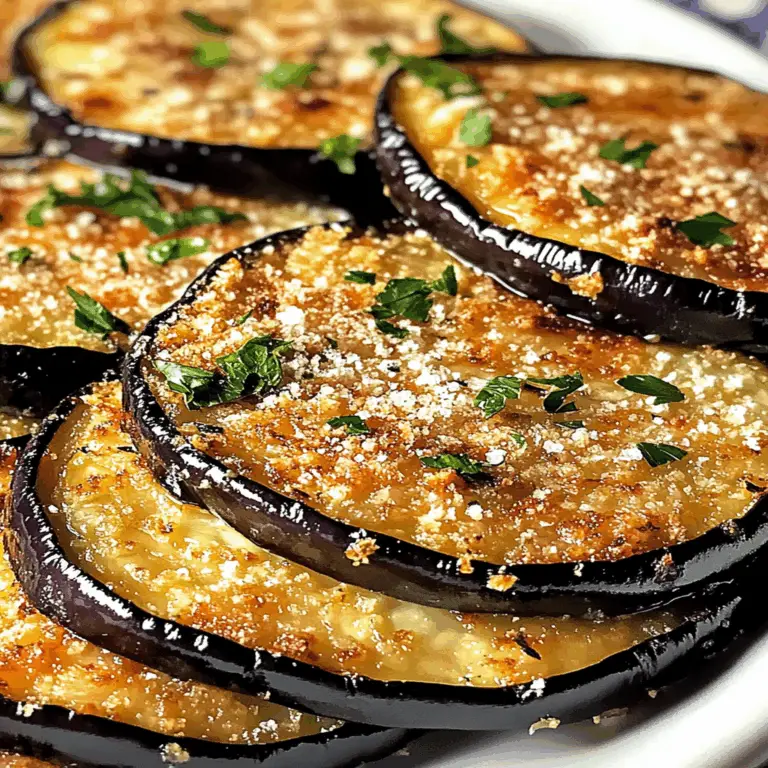 Crispy Oven-Baked Eggplant is a delightful dish that transforms humble eggplant into a crunchy, golden delicacy. Coated in a flavorful blend of panko breadcrumbs and Parmesan cheese, each bite offers a satisfying crunch that pairs beautifully with marinara sauce or can stand alone as a tasty snack. This versatile recipe is perfect for weeknight dinners or elegant gatherings, making it a crowd-pleaser that everyone will love.
