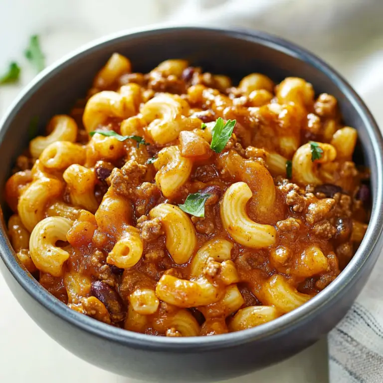 Chili Mac is the ultimate comfort food that brings together the rich flavors of chili and the satisfying texture of macaroni. This one-pot dish is not only hearty but also incredibly easy to prepare, making it a favorite among busy families and individuals alike. With its savory blend of spices, tender pasta, and melty cheese, this recipe will warm you from the inside out. Imagine coming home after a long day to a bubbling pot of Chili Mac simmering on the stove; it’s the kind of meal that feels like a hug in a bowl! Whether you’re serving it up for a weeknight dinner or meal prepping for lunches, this dish is sure to please everyone at your table. Plus, it’s easily customizable—add your favorite toppings or adjust the spice level to suit your taste. Let’s dive into why you’ll love making this delicious dish.