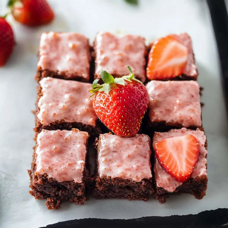 Indulge in the rich and fudgy delight of these easy Strawberry Brownies, where luscious chocolate meets the sweetness of fresh strawberries. Each bite offers a perfect balance of flavors and textures, making them an irresistible treat for any occasion—from casual family gatherings to festive celebrations. With minimal prep time and straightforward steps, this recipe is ideal for bakers of all skill levels. Imagine serving a warm batch straight from the oven, featuring juicy strawberries that burst with flavor alongside decadent chocolate. Whether enjoyed fresh or paired with a scoop of vanilla ice cream, these brownies are sure to impress family and friends alike!