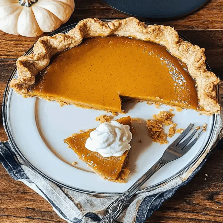 In summary, making a Pumpkin Custard Pie is an enjoyable process that yields a deliciously satisfying dessert perfect for any occasion. With simple ingredients like pumpkin puree, eggs, and spices, you can create a delightful dish that everyone will love. Remember to bake it until just set and allow it to cool before serving for the best results. This lovely pie not only offers great flavors but also brings warmth and joy to your table during festive seasons or casual gatherings.