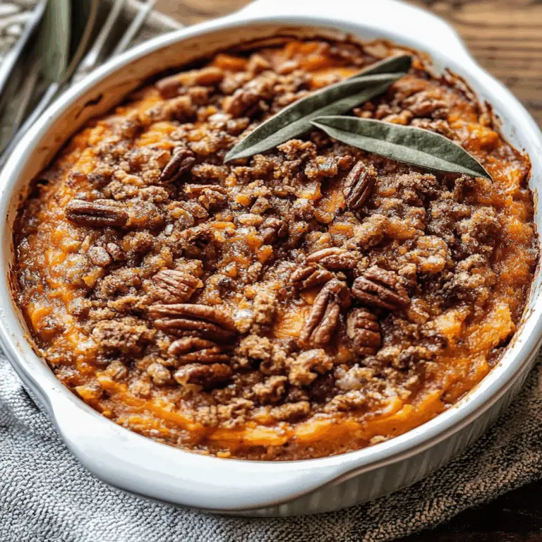 Bourbon Sweet Potato Casserole brings together sweet potatoes and bourbon for a uniquely flavorful side dish that enhances any meal. With its creamy texture and sweet topping, this casserole becomes a crowd favorite during holidays or family gatherings. Preparing it ahead of time saves effort on busy days while allowing you to enjoy its rich flavors with ease. Whether paired with turkey or ham, this dish promises to be a highlight on your dining table.