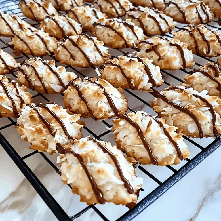 Coconut Almond Macaroons are a simple yet delicious treat that brings joy to any occasion. With their chewy texture and delightful flavors, they are perfect for both snacking and celebrating special moments. Easy to store and customizable according to dietary preferences, these macaroons can cater to many tastes. Whether enjoyed fresh or frozen, they will surely be a hit with family and friends!