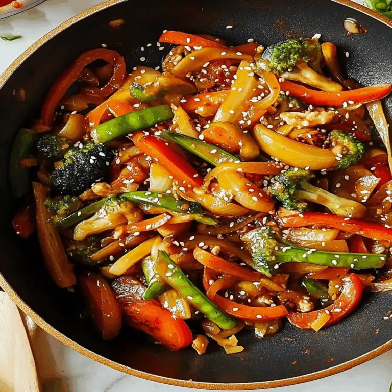 Experience a burst of flavor and color with this Easy Vegetable Stir Fry! Ready in just 20 minutes, this nutritious dish features a delightful mix of bell peppers, broccoli, and carrots, all sautéed to perfection. Ideal for busy weeknights, this recipe is fully customizable with your favorite vegetables and proteins. Serve it over rice or noodles for a satisfying meal that the whole family will adore.