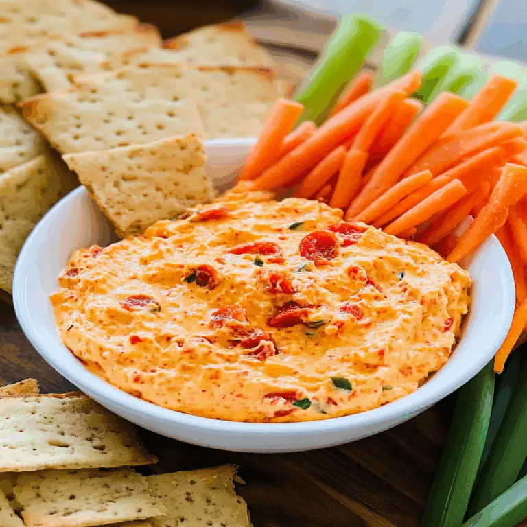 Pimento Cheese Dip is a versatile and delicious snack perfect for any occasion. With simple ingredients like cream cheese and cheddar cheese, this creamy dip offers rich flavors that everyone enjoys. You can easily prepare it ahead of time, making it a go-to choice for parties and gatherings. Don’t forget to pair it with your favorite dippers to elevate your snacking experience! Enjoy this crowd-pleaser at your next event