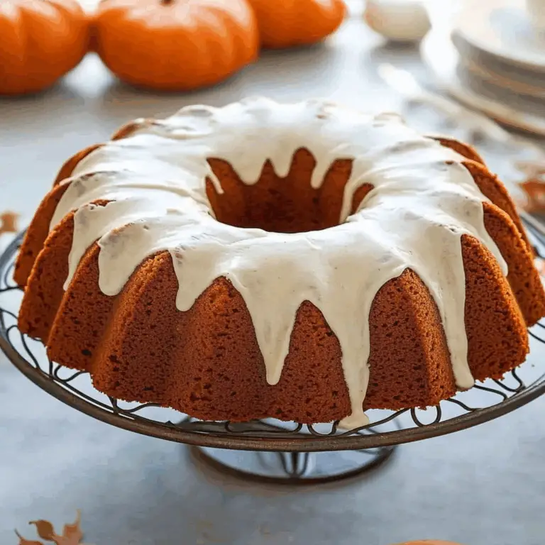 Pumpkin Bundt Cake with Cream Cheese Icing is the ultimate autumn dessert, radiating warmth and nostalgia in every bite. This moist and flavorful cake combines the rich essence of pumpkin and spices, topped with a smooth, creamy icing that will have everyone reaching for seconds. Perfect for cozy gatherings or as a sweet treat anytime, this cake captures the spirit of fall beautifully.