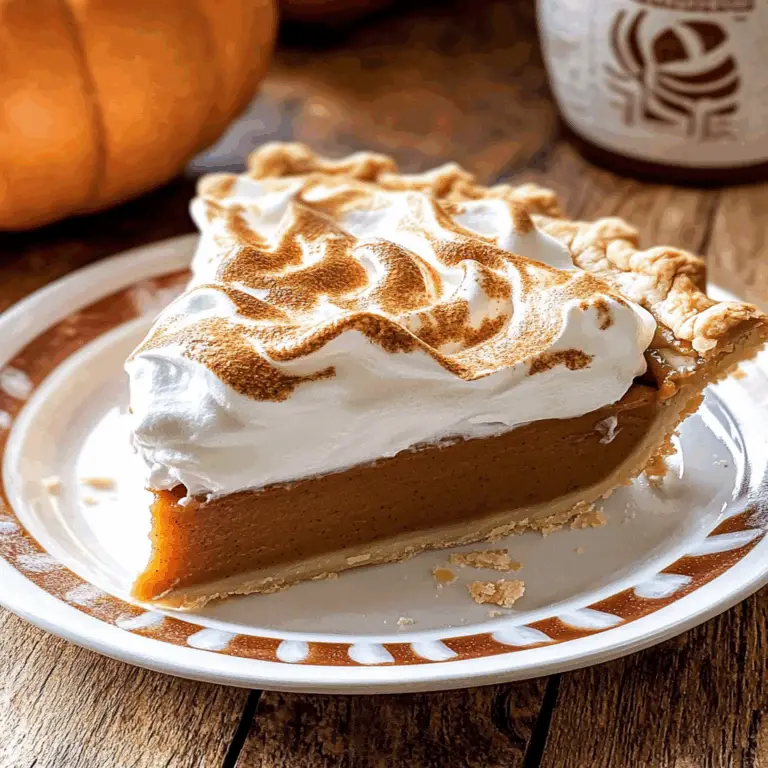 Pumpkin Spice Meringue Pie is a delightful autumn dessert that captures the essence of fall with its creamy pumpkin filling, spiced with cinnamon and nutmeg, and topped with a light, fluffy meringue. This stunning pie not only impresses guests at Thanksgiving but also makes cozy nights in feel special. Easy to prepare yet visually captivating, it’s bound to become your seasonal favorite.