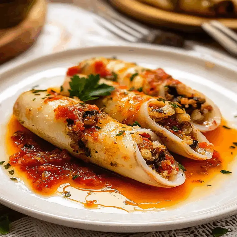 Stuffed squid is a delectable seafood dish that features tender squid tubes filled with a savory mixture of rice, vegetables, and cheese. This Mediterranean-inspired recipe brings together rich flavors and stunning presentation, making it perfect for special occasions or cozy dinners at home. With each bite, you’ll experience a burst of taste that transports you to sun-soaked shores. Simple to prepare yet visually impressive, stuffed squid is sure to delight your family and guests alike.
