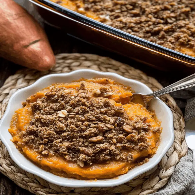 Sweet Potato Casserole with Brown Sugar Streusel is a heartwarming dish that combines creamy sweet potatoes with a crunchy, caramelized topping. Perfect for holiday gatherings or cozy family meals, this casserole delivers comfort and nostalgia in every bite. Easy to prepare, it’s sure to be the star of your table, inviting everyone to indulge in its rich flavors and delightful textures.