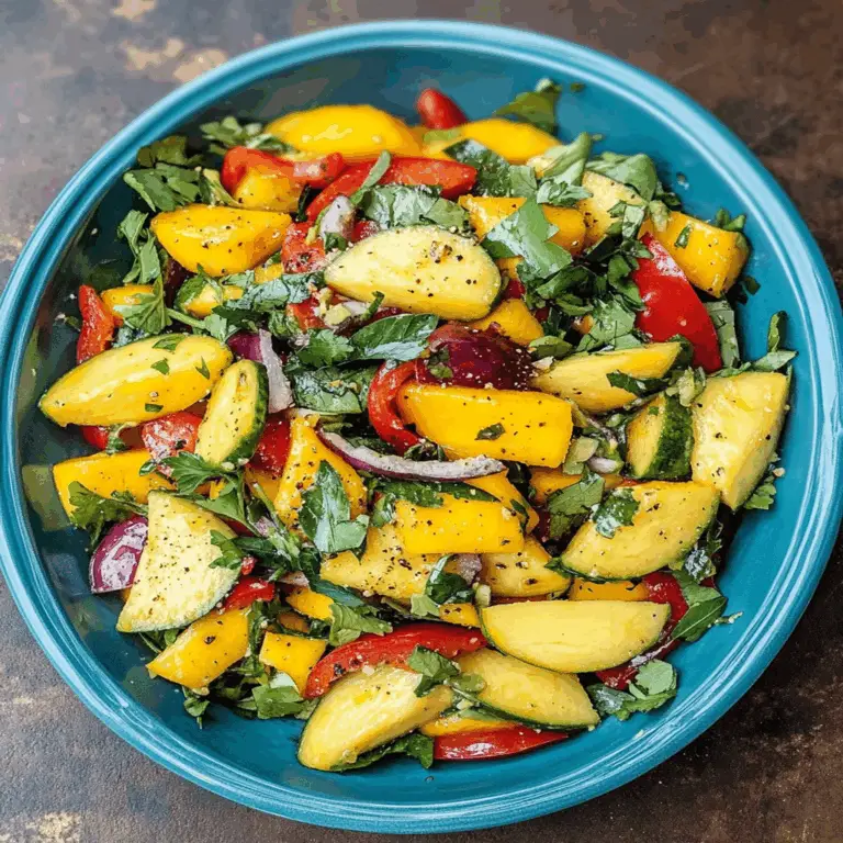 Mediterranean-Style Mango Salad is a vibrant and refreshing dish that brings the flavors of summer to your table. Combining juicy mangoes, crisp cucumbers, and zesty lime juice, this salad offers a delightful tropical experience in every bite. Perfect as a side for barbecues or a light lunch, it’s quick to prepare and can be easily customized to suit your taste preferences. Serve chilled for an invigorating treat that brightens any occasion!